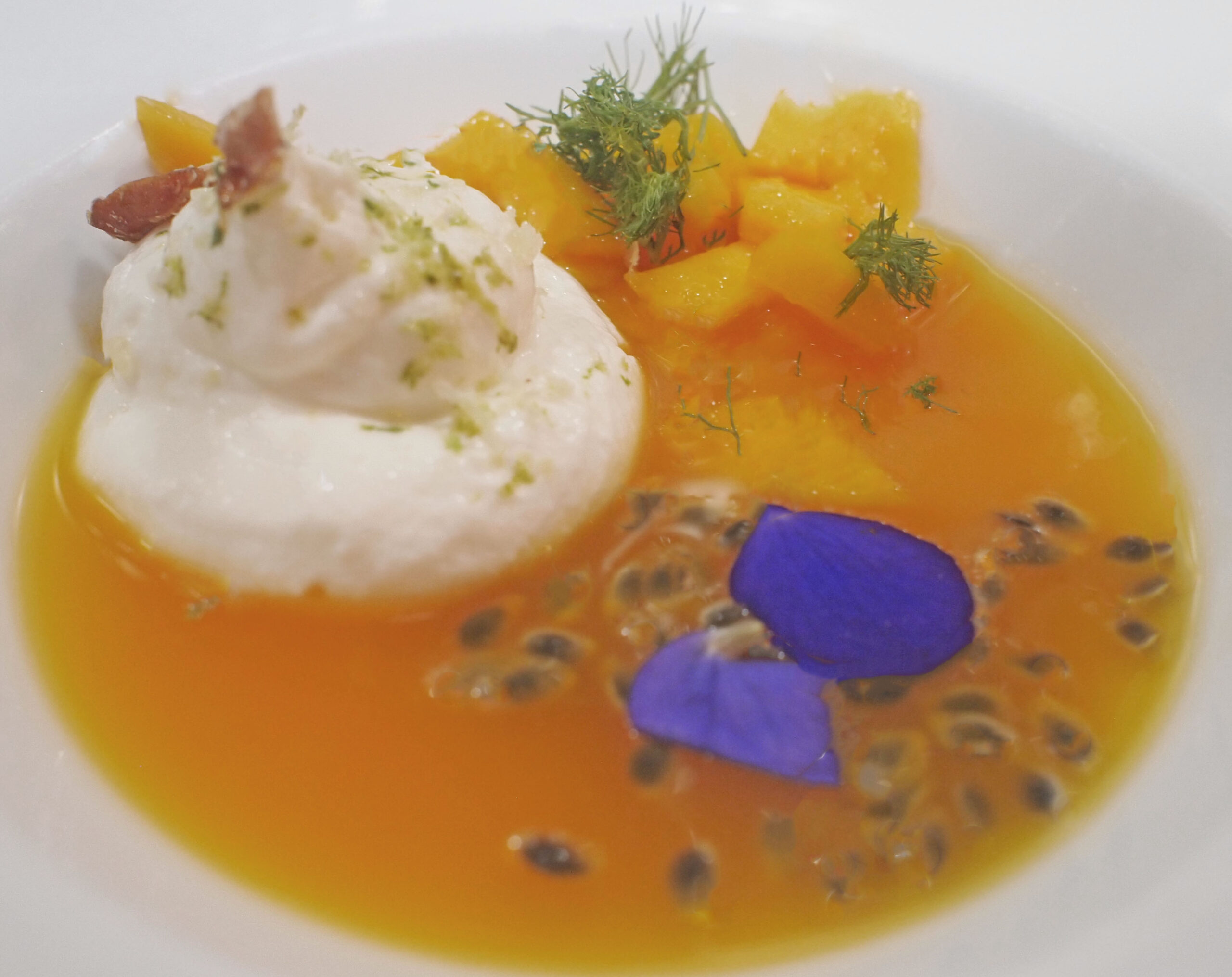 borden. Leg een flinke eetlepel kwark op de mangoblokjes. Druppel wat
