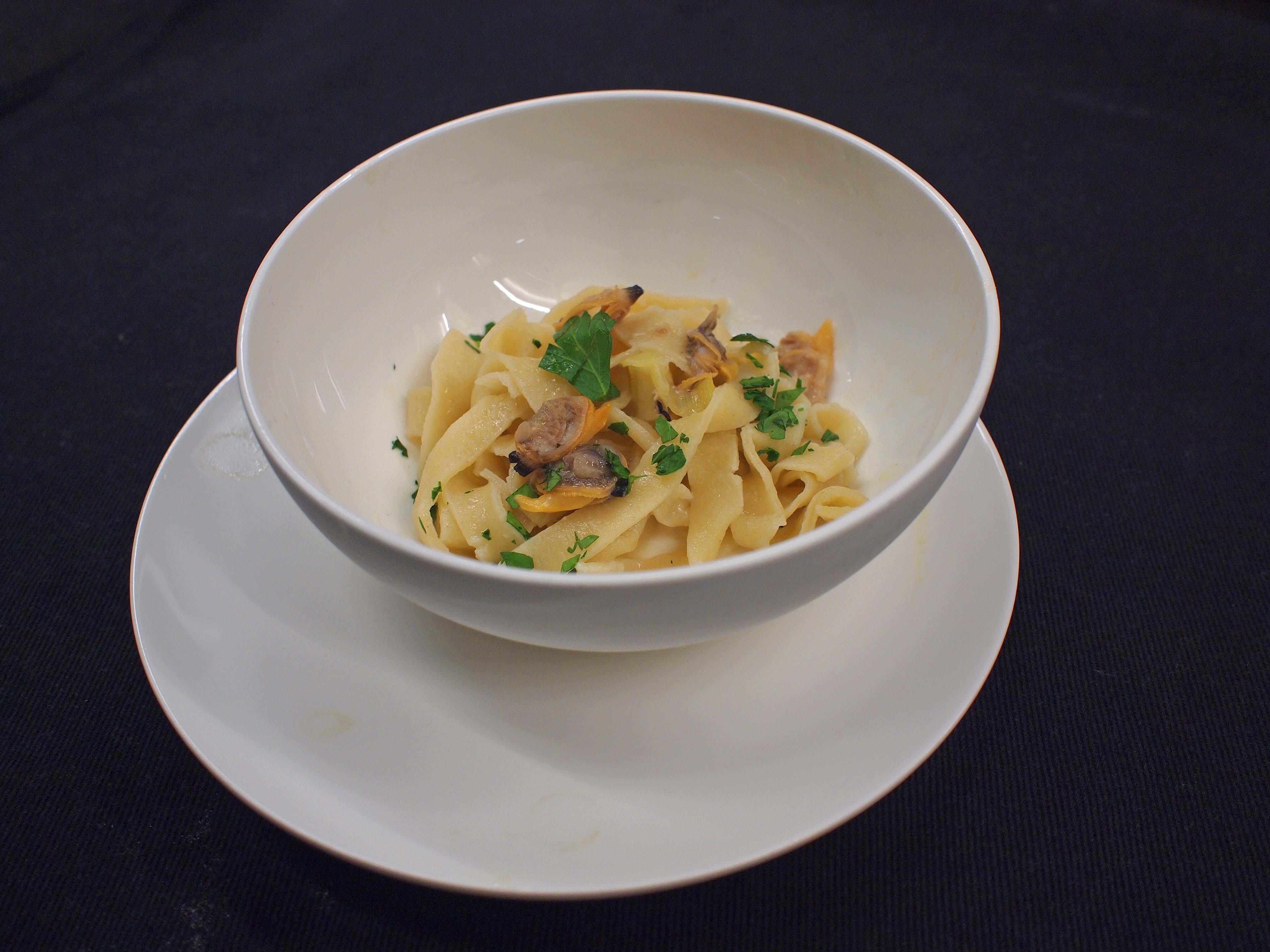 Doe de ingrediënten in de Magimix en draai tot pastadeeg. Draai linguini van het deeg met behulp van de pastamachine. Kook de linguini gaar in gezouten water en spoel af in koud water.