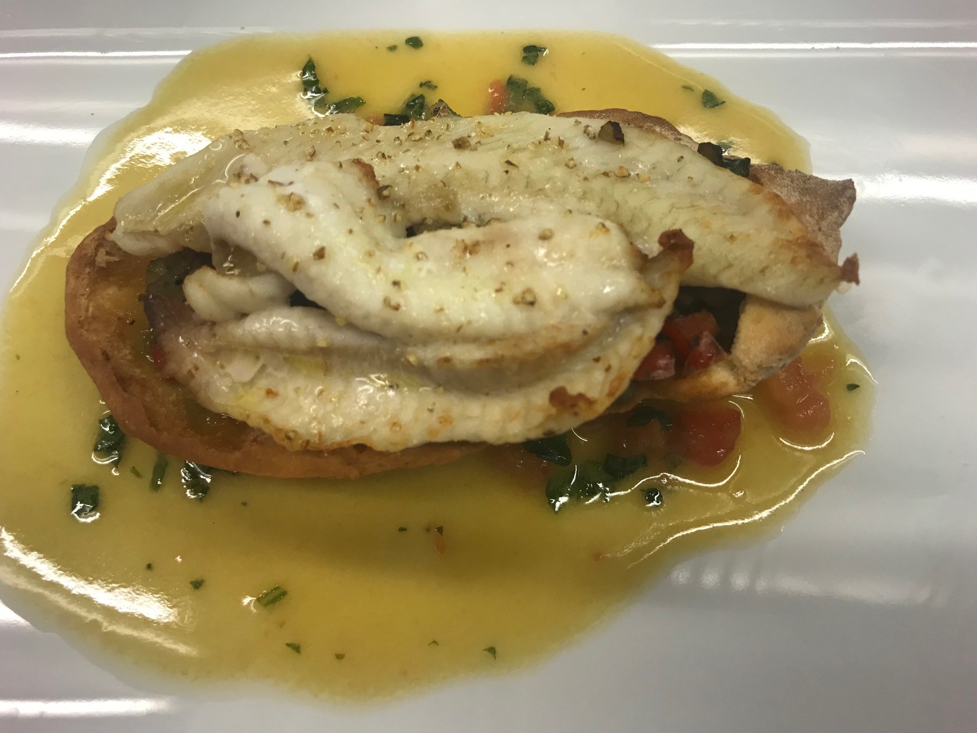 Fondreche Blanc de Domaine 2015Bij dit gerecht van tong en pittige ratatouille past deze wijn uit de Rhône goddelijk (althans op de chefsavond) Een wijn met 90 Parkerpunten!!!