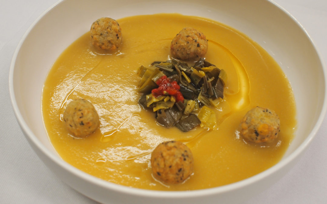 Kook de kikkererwten en rijst gaar. Doe alle ingrediënten behalve het bloem in de Magimix en pulse tot een grove pasta maar niet helemaal glad. Maak kleine bolletjes ter grootte van een knikker en wentel in bloem. Bewaar de bolletjes in de koeling tot vlak voor opdienen. Frituur de bolletjes enkele minuten op 180°C tot goudbruin. Laat uitlekken op keukenpapier.