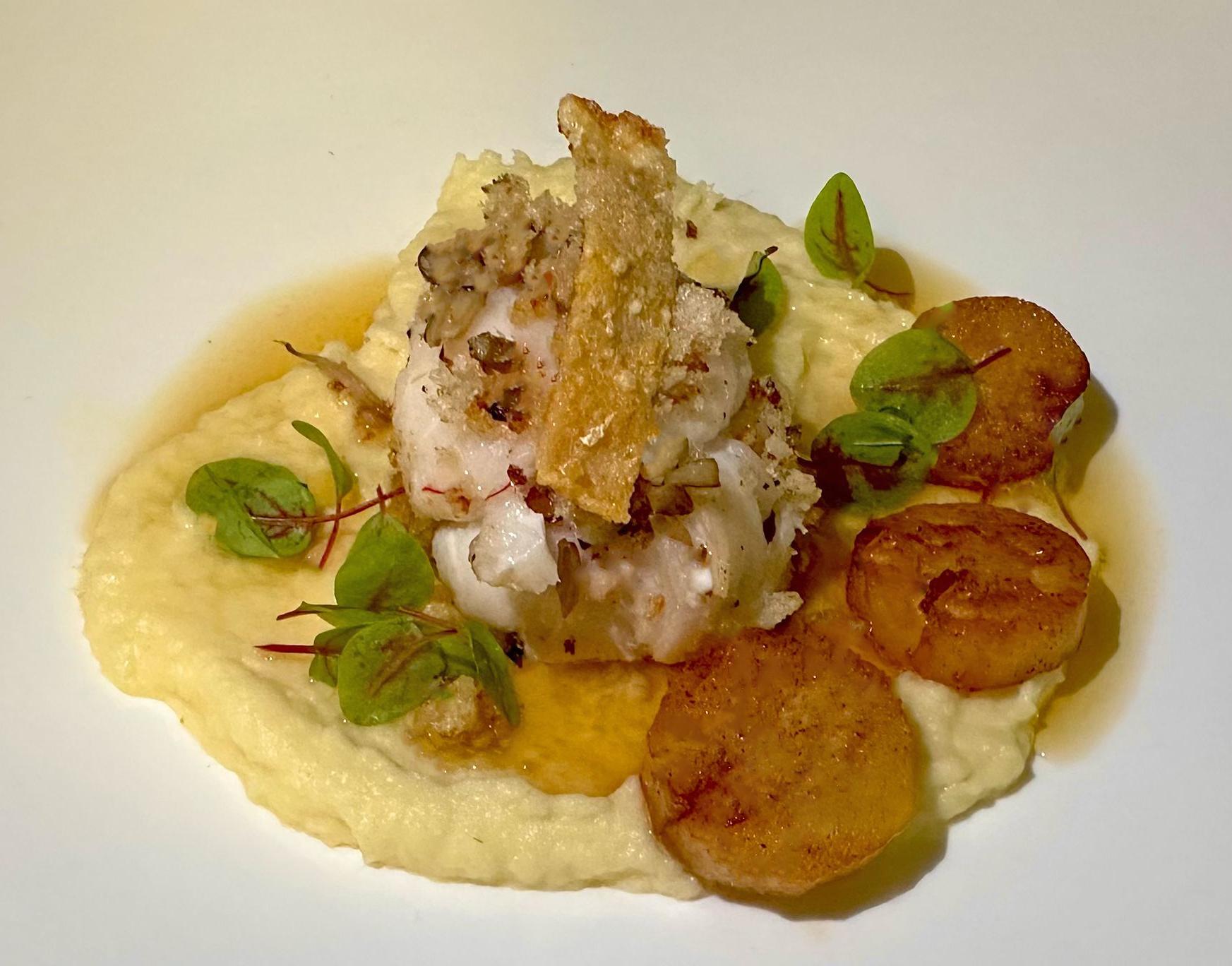 Doe een flinke lepel pastinaakcrème op het bord.