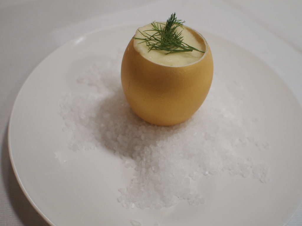 Paul Kubler – Cremant d’AlsaceDit subtiele gerechtje in een goudkleurig eitje vraagt om een feestelijke wijn: mooie zachte bubbels uit de Elzas. Daar helemaal in het Zuiden ligt het plaatsje Soultzmatt en hier vind je Domaine Paul Kubler. In de wijngaarden wordt heel natuurlijk gewerkt, met o.a. natuurlijke compost, veel ploegen, kort snoeien en bijbehorende lage rendementen. Deze cremant is heerlijk fris met tonen van perzik en citrus. Fijne mousse. Het is een echte “Blanc des Blancs”, want er gaan Riesling, Auxerrois en Pinot Blanc in gelijke delen in. Net als bij Champagne tweede vergisting op fles. Daarna 15 maanden ‘sur lie’.
