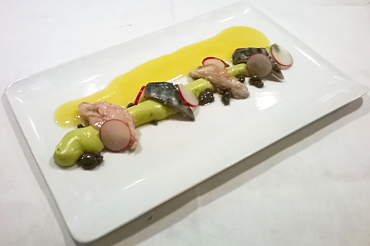 De aansluiting bij het gerecht zit in de ronde en evenwichtige smaak, steenfruit,groene appels, limoen,amandel en honing