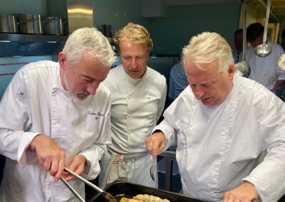 Een maand lang wordt door iedere brigade hetzelfde maandmenu gekookt en daarna ook gezamenlijk gegeten in het aansluitende restaurant gedeelte. We zijn dus geen restaurant waar mensen van buiten kunnen dineren. Een menu bestaat uit minimaal vier tot vijf gangen met bijpassende wijnen.
